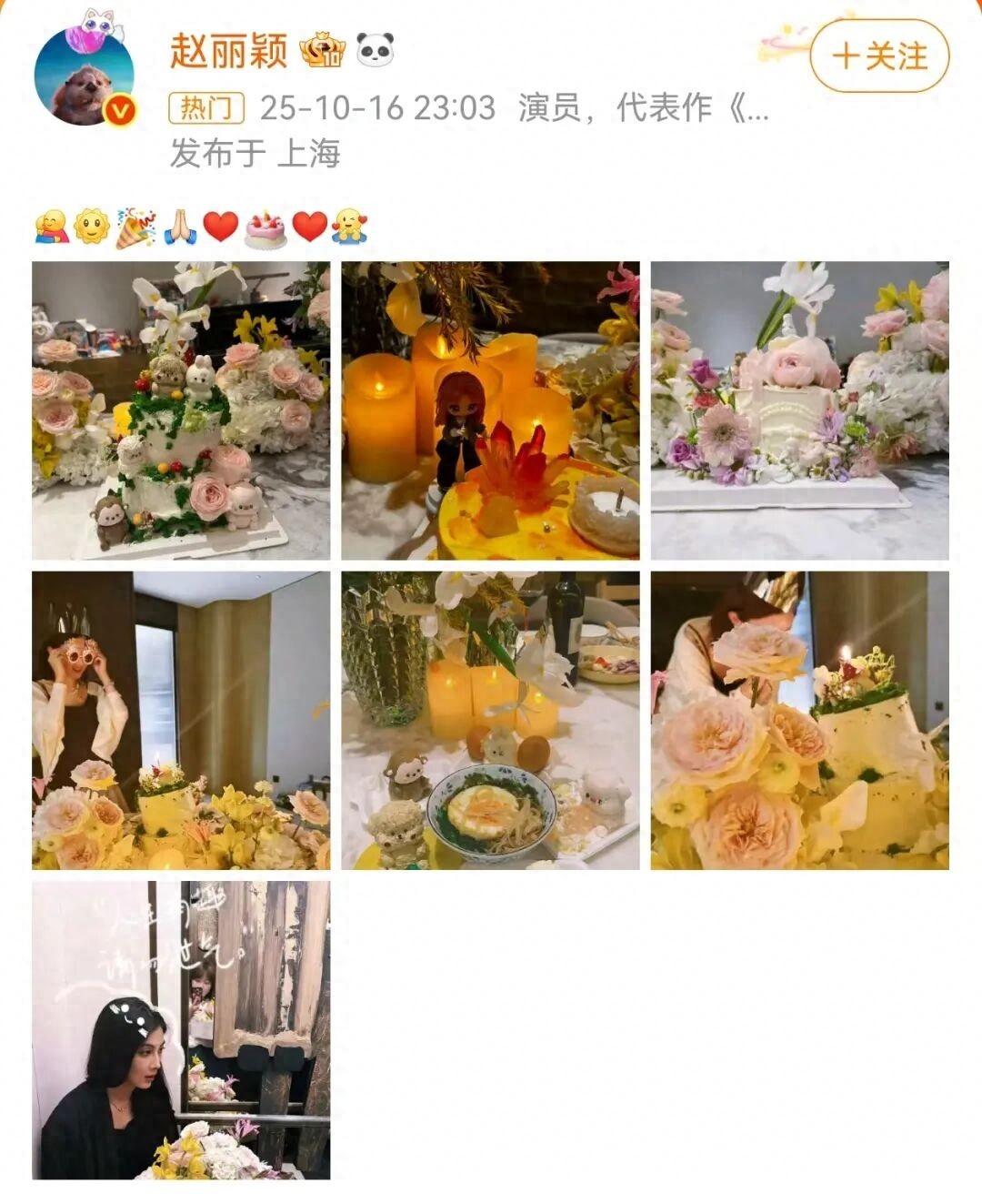 当晚,赵丽颖在个人社交平台晒出了多庆生照,有蛋糕的、长寿面的以及她许愿的瞬间。